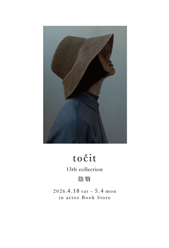 会期/2026年4月18日(土)~ 5月4日(月・祝) 11時~19時※4/29(水・祝)・4/30(木)は店休、最終日は17時まで営業時間/11時~19時会場/アルトスブックストア(島根県松江市南田町7-21) 風薫る季節、今年も帽子ブランド「točit」(トチエット)の展示販売会を開催さ...